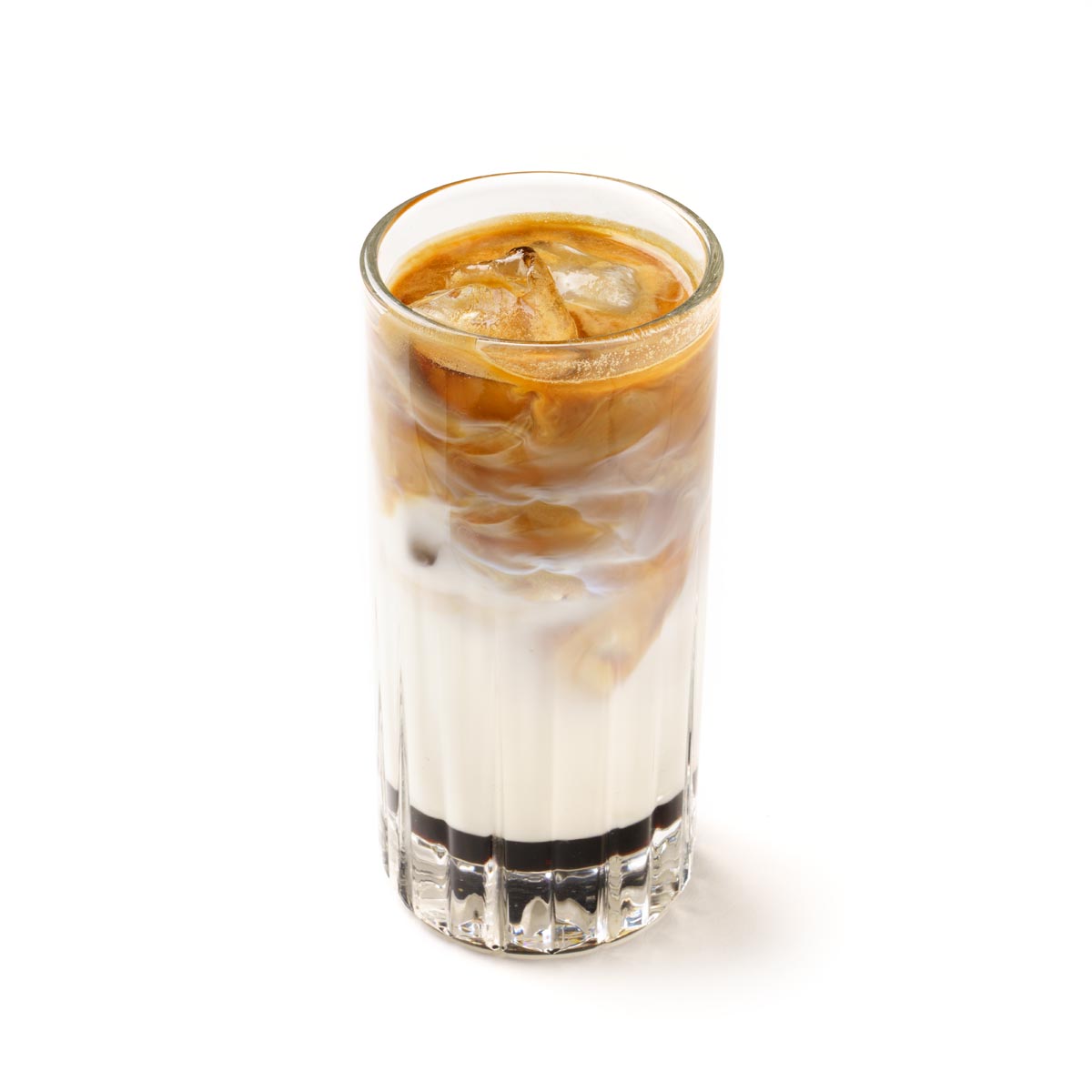 (شات اسپرسو ، شیر،سیروپ شکلات،یخ)